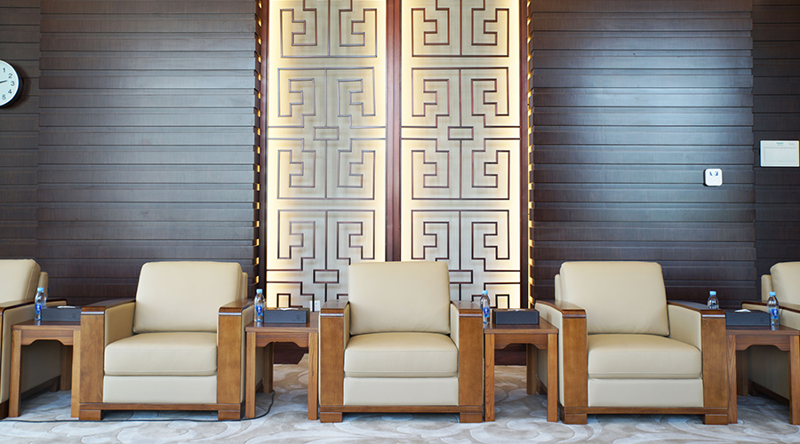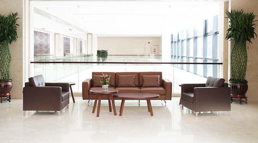 全皮贵宾沙发坐感优越,典雅的设计为接待空间制造高雅品调。洽谈空间各具特色,简单而不乏创意的洽谈家具,稍作色彩点缀,让空间氛围瞬间活跃起来。半封闭区域营造私密性;开放的休闲洽谈区,则可休憩闲谈。实木木皮的洽谈桌椅更显清新亮丽,能活跃现场的氛围,让会面交流更加自在放松。