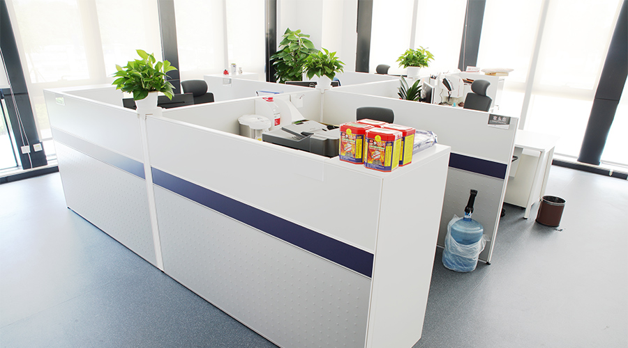 工作区纯朴色彩的运用与空间设计,增强了员工的认同与归属感。简洁干练的T40屏风,纯白的三胺板材,在室内灯光的映衬下通透明净。采用静电粉末喷涂工艺,崇尚健康、环保的办公理念为员工提供清新舒适的办公环境。