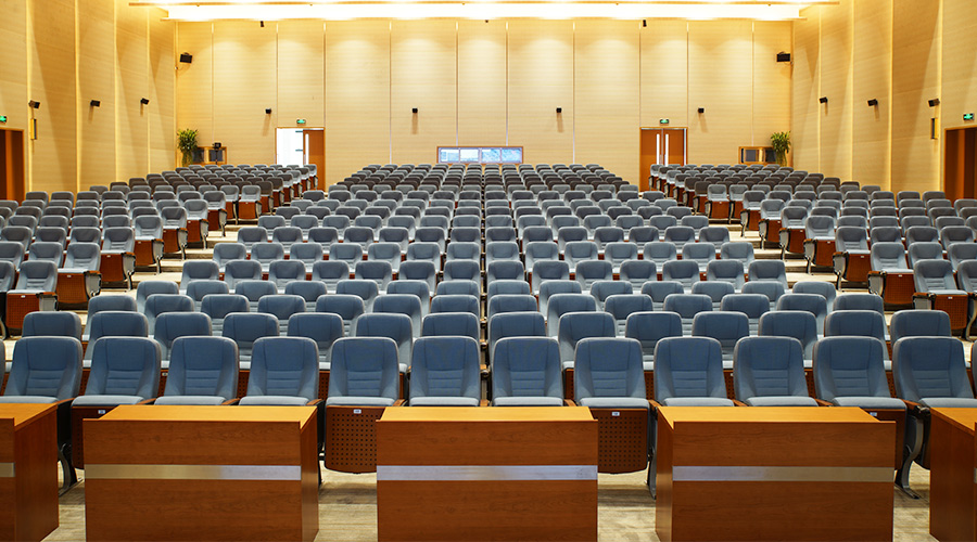整齐明亮的礼堂,为每次大型的典礼、集会提供了活动的场所。影院级的配置,可见面的所有材料均为吸音材质,礼堂椅使用高级沙发布料坐感柔软自在,每座位均配有收纳式独立写字板。
