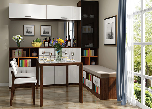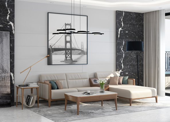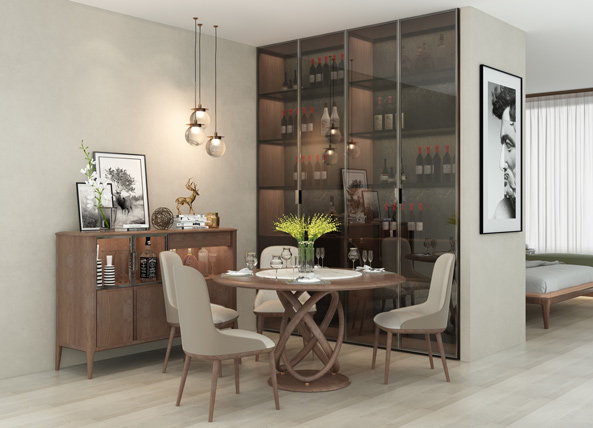 迈阿密系列风格热爱时尚、潮流前卫、格调时尚。 创新选用纹理细腻、色泽天然的胡桃木与钢琴漆面的亮光板材相搭配,营造出强烈的视觉冲击效果,胡桃木弦切面为美丽的大抛物线花纹,可以形成赏心悦目的装饰图案,与融入了欧洲现代时尚的设计相得益彰,让您的家无处不透露着时尚潮流气息。